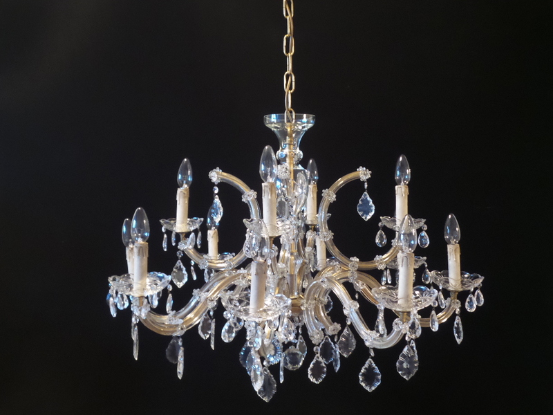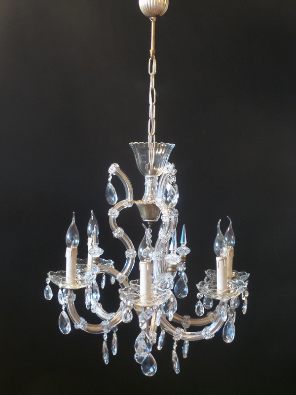 MT3003 Kristallen oude maria theresia kroonluchter met 6 kaarslampen en 1 lichtpunt in het midden heeft 3 facet geslepen pinakels